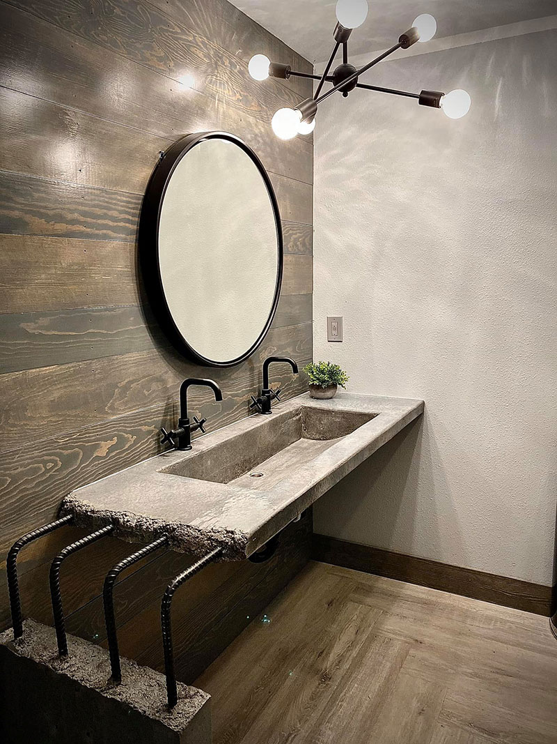 Creative bath remodel, we're in love with the juxtaposition of raw materials giving it an industrial look and feel.